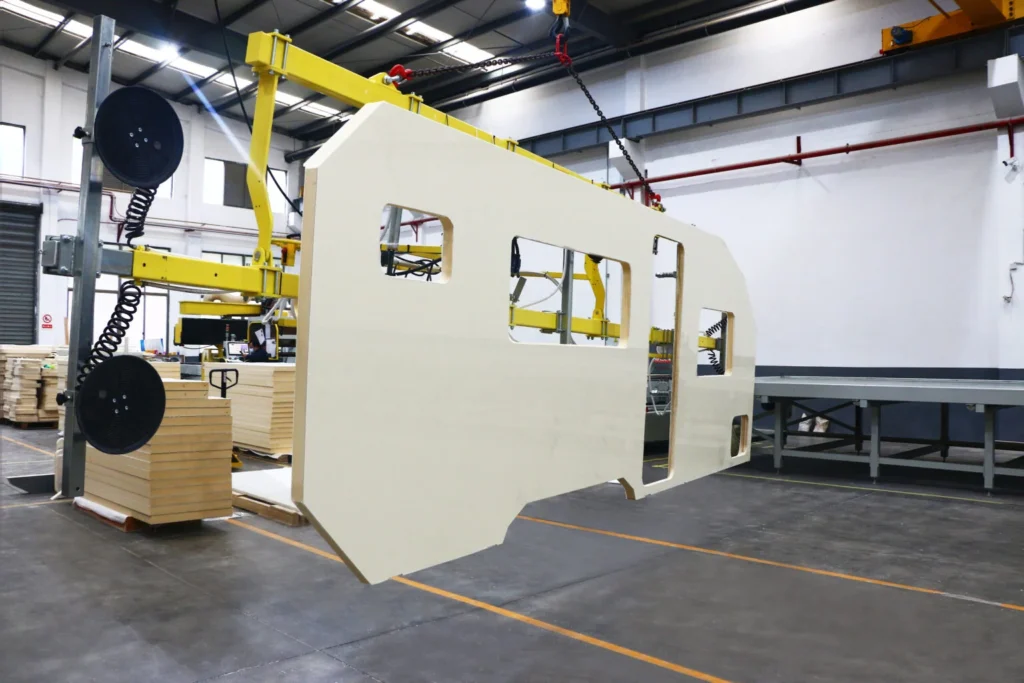 carroceria compuesta es un fabricante especializado en paneles sándwich de espuma de fibra de vidrio XPS. Sus caras de PRFV están recubiertas de gelcoat y unidas con adhesivos que no se despegan. El núcleo utiliza XPS (aislamiento de poliestireno extruido), que es un proceso continuo que crea una estructura de células cerradas que es 99 por ciento impermeable. La superficie es lisa, y la densidad y el espesor del núcleo de espuma se pueden personalizar. Proporciona un excelente aislamiento térmico con una vida útil de hasta 50 años.